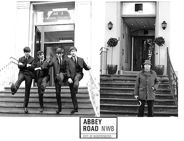 A la izquierda The Beatles y a la derecha yo, en la puerta de los estudios de Abbey Road